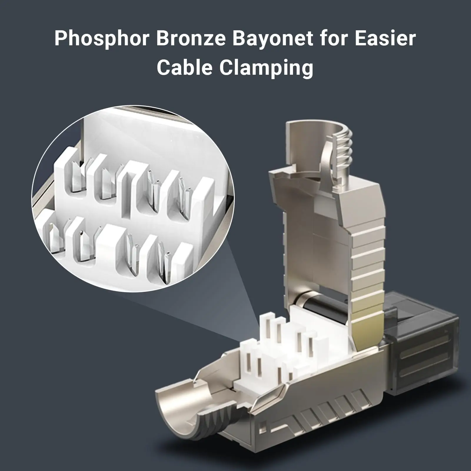 Conectores ZoeRax RJ45 sin herramienta Cat 8 Cat 7 Cat 6a, Cat8 Cat7 Cat6a enchufe de terminación de campo enchufes modulares RJ45 blindados para 2000MHz 2GHz 40G Cable LAN sólido de doble blindaje 22AWG-24AWG