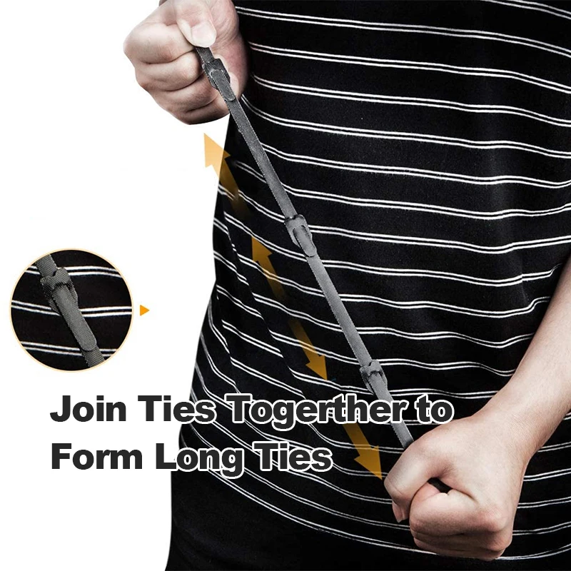 Longitud de PRE-CUT-ajustable para adaptarse a diferentes circunferencias; Simplemente Inserte el extremo redondeado a través del orificio y tire de la correa apretada; Los lazos se envuelven firmemente para una sujeción segura