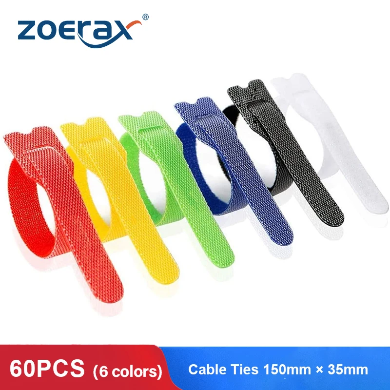 Comprar ZoeRax-correas de sujeción de 60 piezas, corbatas ajustables reutilizables, tela de microfibra, gestión de cables, organizador de lazos de gancho