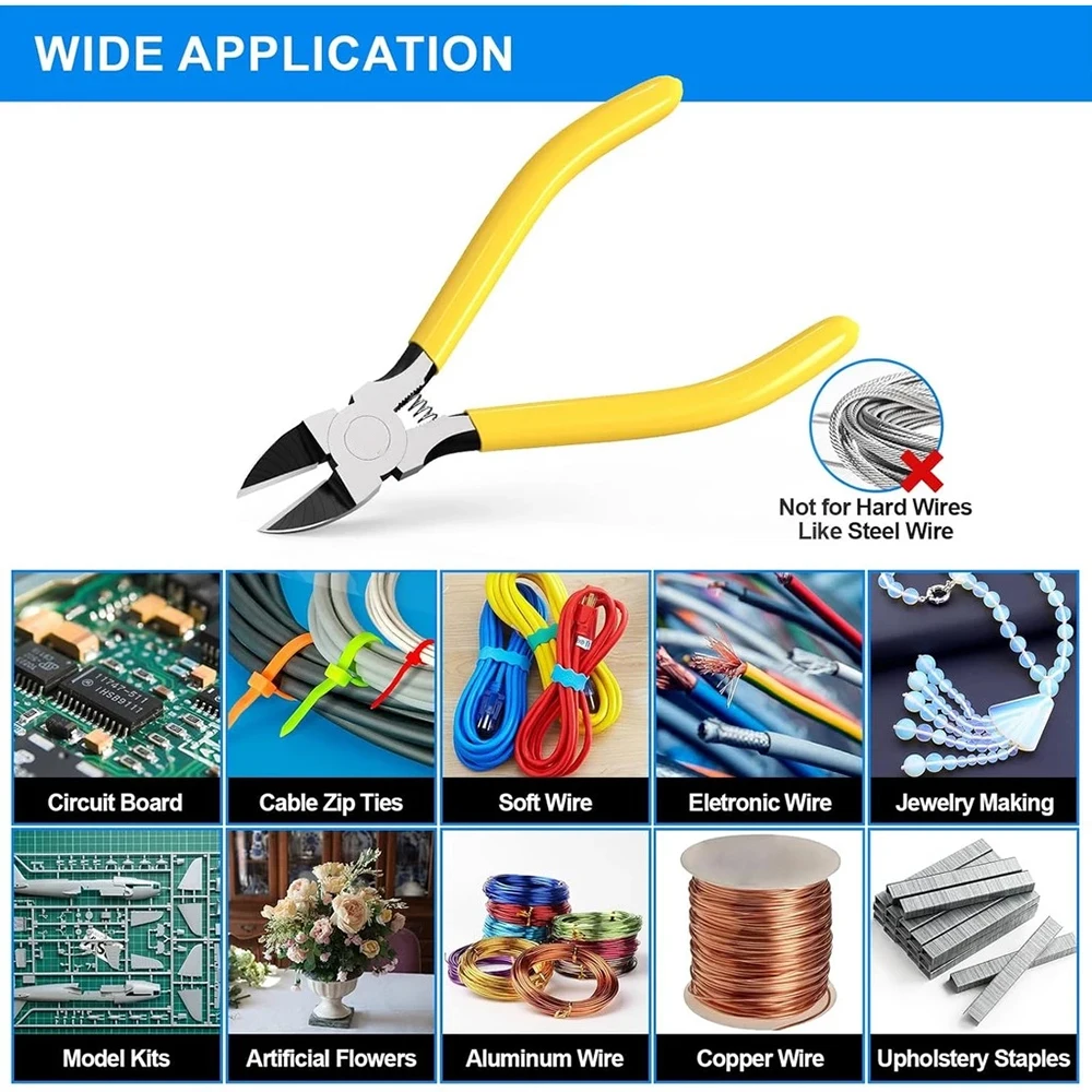 Este cortador es perfecto para diversas tareas, incluido el trabajo de placas de circuito, la fabricación de joyas, bridas para cables y más.Tenga en cuenta: esta herramienta no está diseñada para usarse en cables duros como cables de acero.