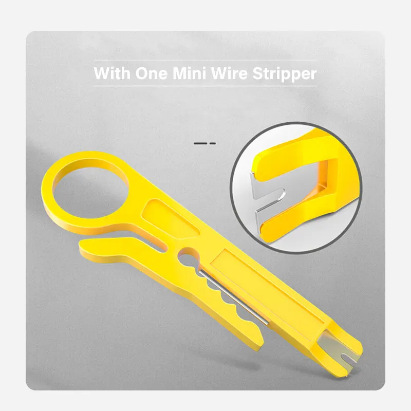 ✅Cortador Pelacables integrado: La hoja intercambiable SK5 garantiza su calidad y resistencia, tira y corta cables Ethernet, cables conductores emparejados (RJ11, RJ12, RJ22, RJ45), par trenzado, cables de voz y datos, no es necesario comprar un cortador o Pelacables por separado, Con un protector de cuchillas en los cuchillos de corte y pelado reduce el riesgo de lesiones.