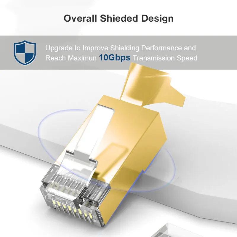 Conector ZoeRax Cat7 RJ45 Cat7/6/STP 8P8C 5e, enchufe de cabeza de Cable Ethernet Modular chapado en oro para conectores de engarce de red Jr 45.