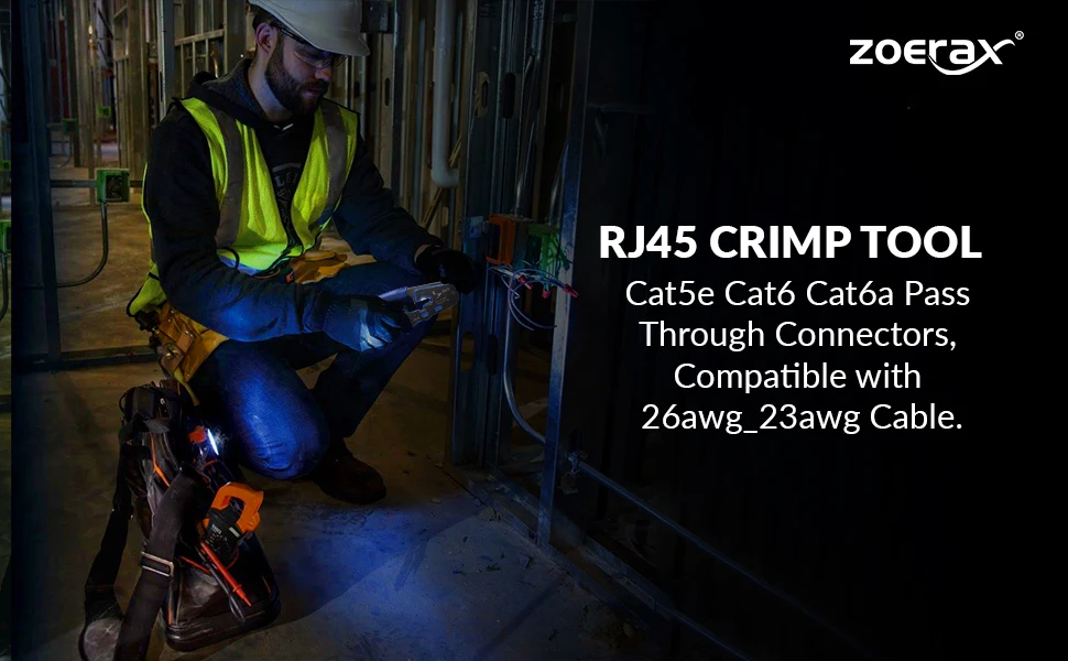 Herramienta de engarce ZoeRax RJ45 pasa a través del cortador de engarce para Cat6a Cat6 Cat5 Cat5e 8P8C conector Modular Ethernet herramienta de engarzado todo en uno