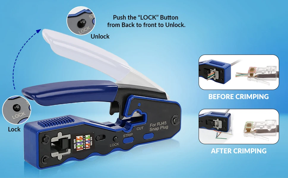 ✅Herramienta de engarzado RJ45 para conectores Pass-Thru RJ45 cat5e cat6 cat6a, funciona con cable 26awg ~ 23awg.