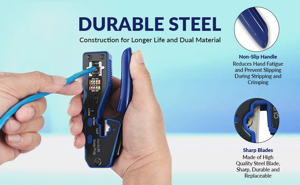 Comprar ZoeRax-Herramienta de crimpado RJ45, cortador de engarce de paso para Cat6a, Cat6, Cat5, 8P8C, conector Modular, Ethernet, herramienta de cable todo en uno