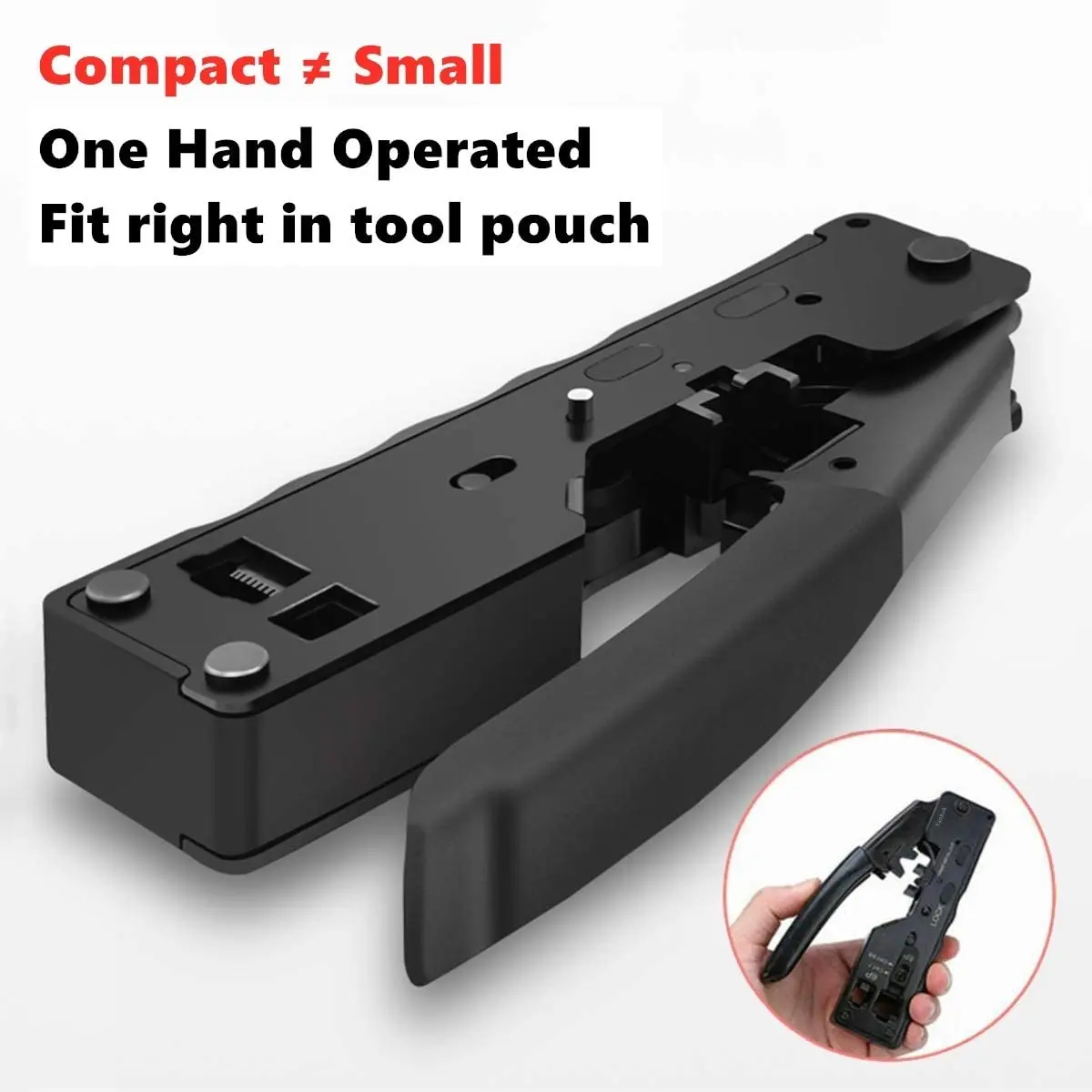 ✅Crimpadora modular de diseño compacto: 2/3 del tamaño de las crimpadoras tradicionales, operación con una sola mano con núcleo de acero recubierto de óxido negro resistente al óxido. El mango mate ergonómico con resorte de retroceso devuelve la herramienta a la posición lista al completar el ciclo le ayuda a ahorrar tiempo y esfuerzo. El tamaño compacto cabe en cualquier bolsillo, bolsa de herramientas y pecho.