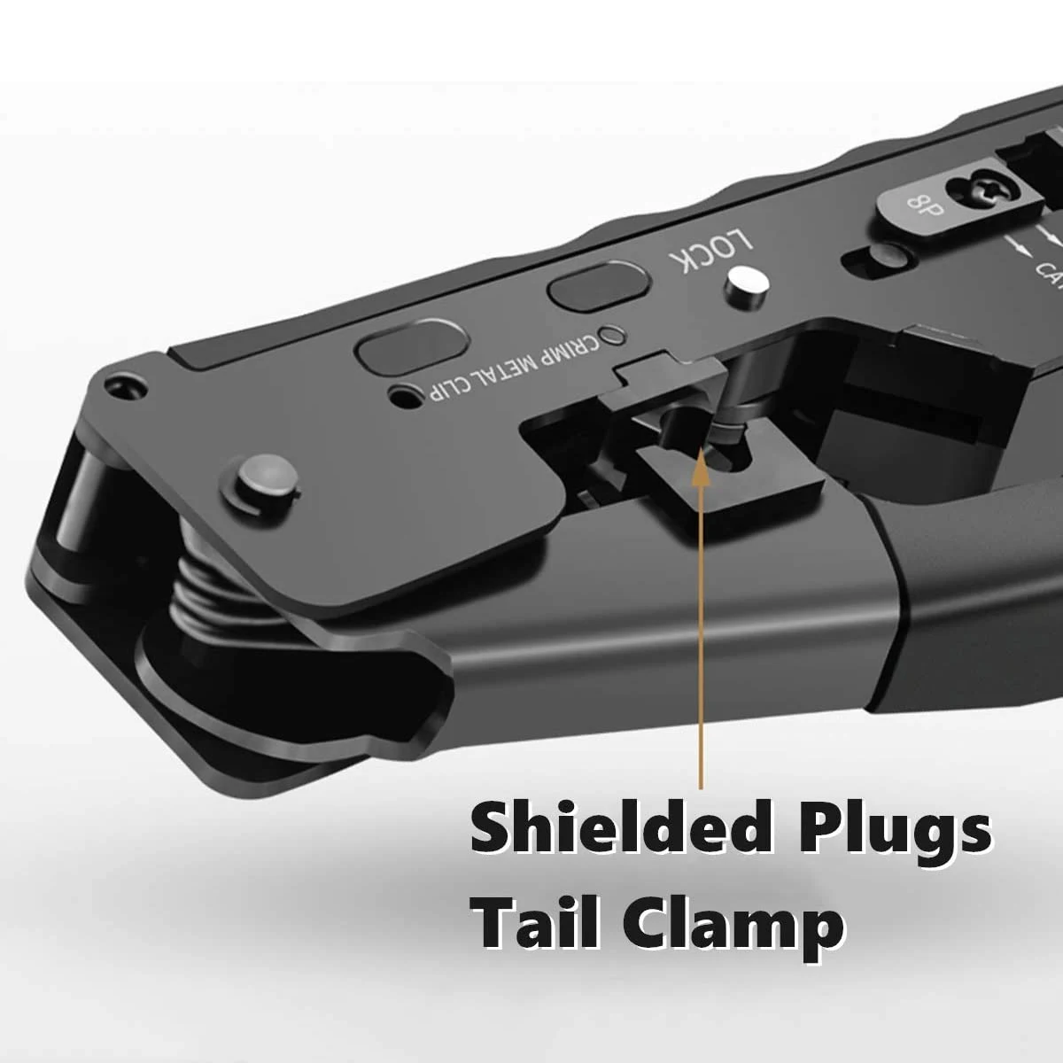 ✅Construido para conectores de red blindados: crimps RJ45 (datos) y RJ12 RJ11 (voz) cavidades de troquel fijas, admite cables Ethernet STP/UTP Cat5 Cat5e Cat6, pares trenzados, teléfono, voz, y prensado de cables de datos. Especialmente Diseñado para conectores blindados Cat6a Cat7 e incluso engarzar el clip de metal en los enchufes.