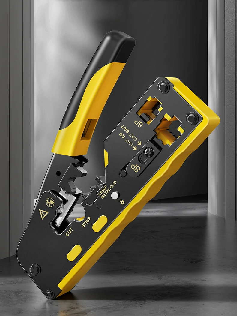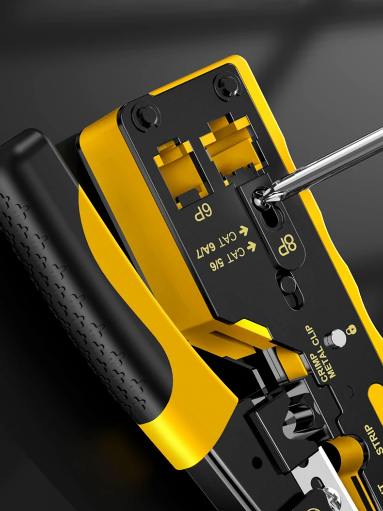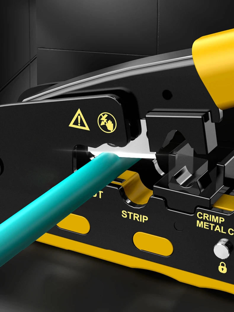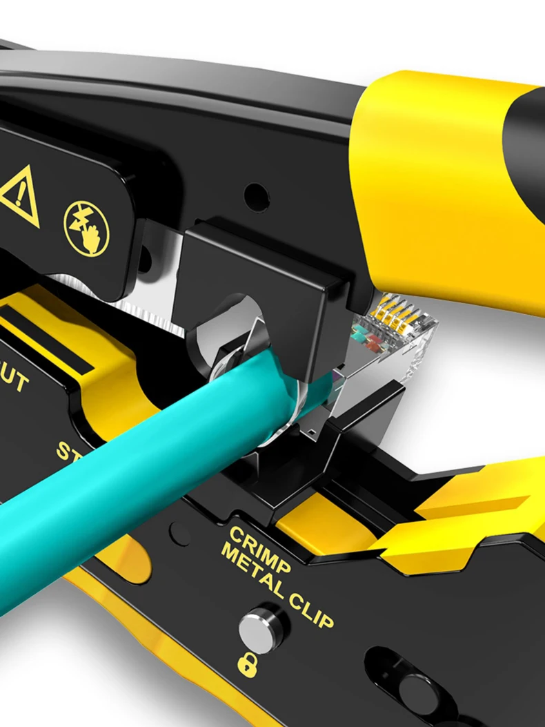 Diseño único: la herramienta de engarzado RJ45 también es adecuada para enchufes modulares blindados para engarzar los clips metálicos de cola de milano, especialmente para que pase a través de enchufes modulares de cola de milano.