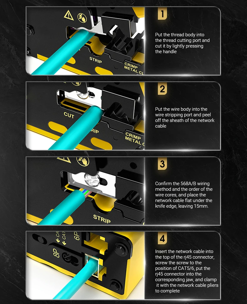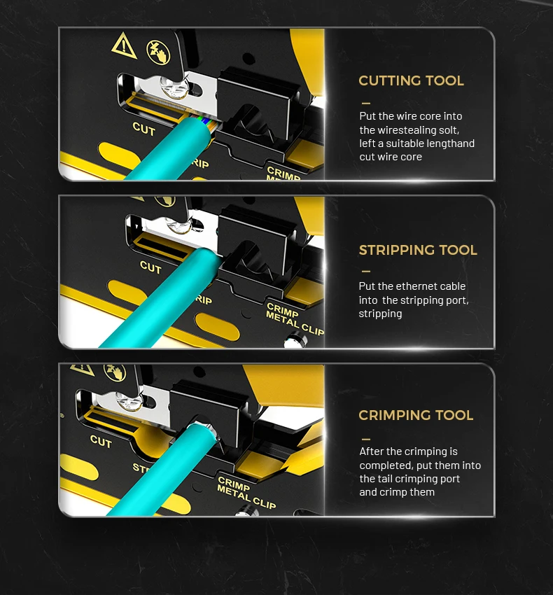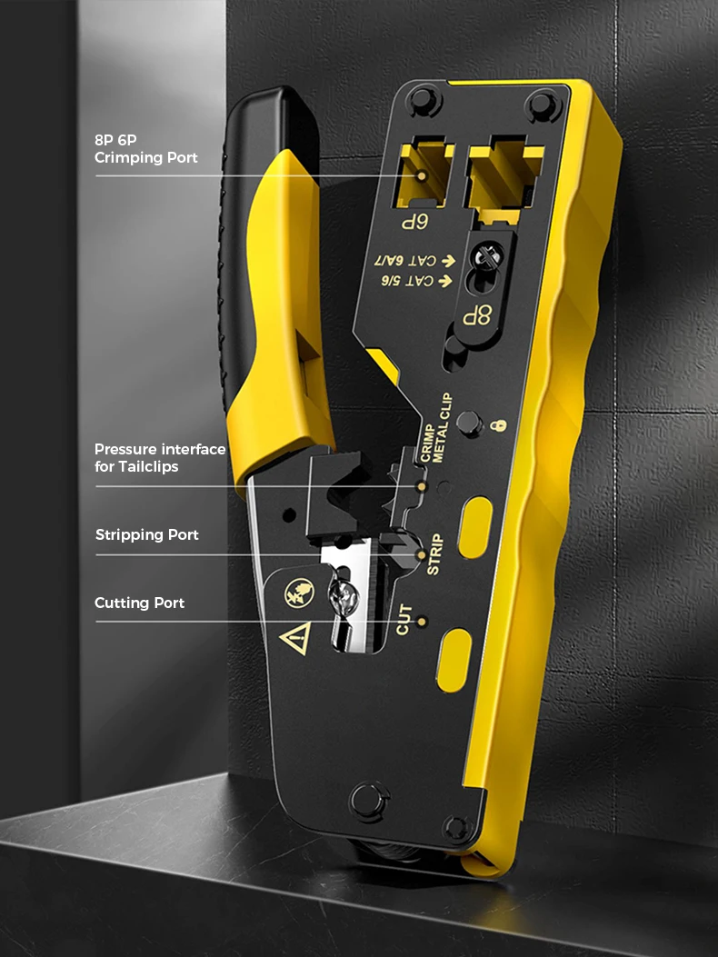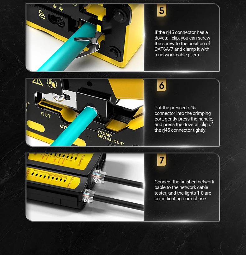 Diseño único: la herramienta de engarzado RJ45 también es adecuada para enchufes modulares blindados para engarzar los clips metálicos de cola de milano, especialmente para que pase a través de enchufes modulares de cola de milano.