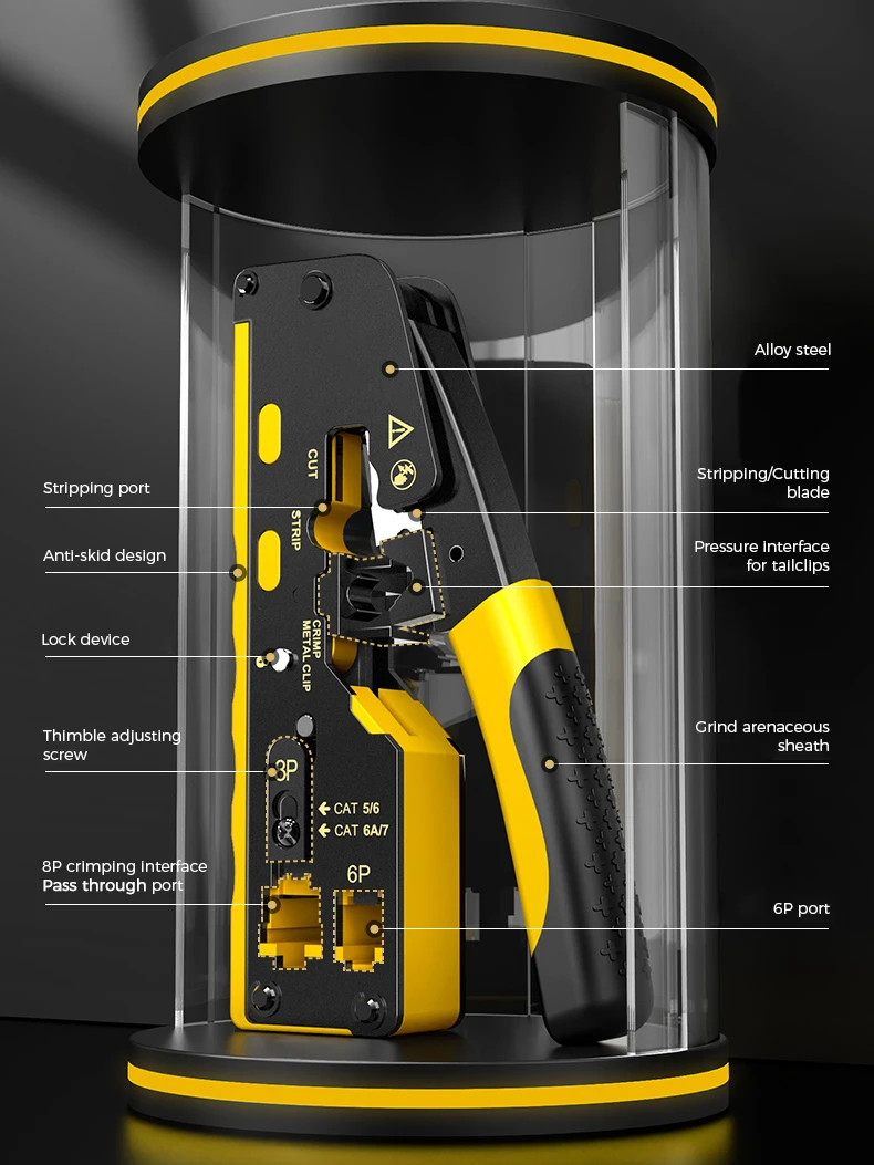 Herramienta de engarzado ZoeRax RJ45, engarzadora de cable Ethernet de grado profesional para enchufes modulares Cat7 Cat6A Cat5E Cat5