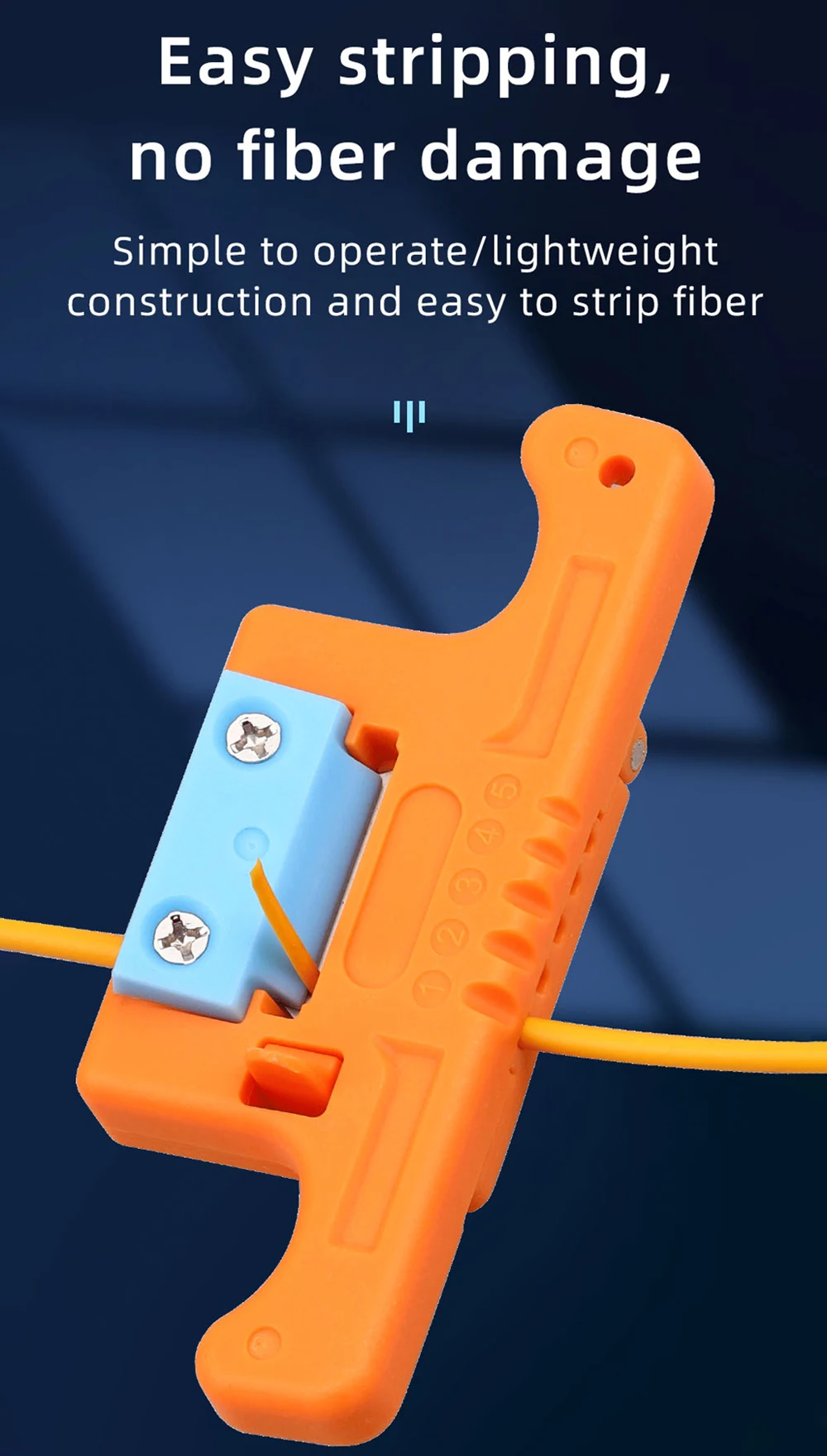 Esta herramienta está diseñada específicamente para pelar cables de fibra óptica con diámetros de 1,9 mm a 3,0 mm, lo que garantiza un pelado preciso y eficiente para un rendimiento óptimo.