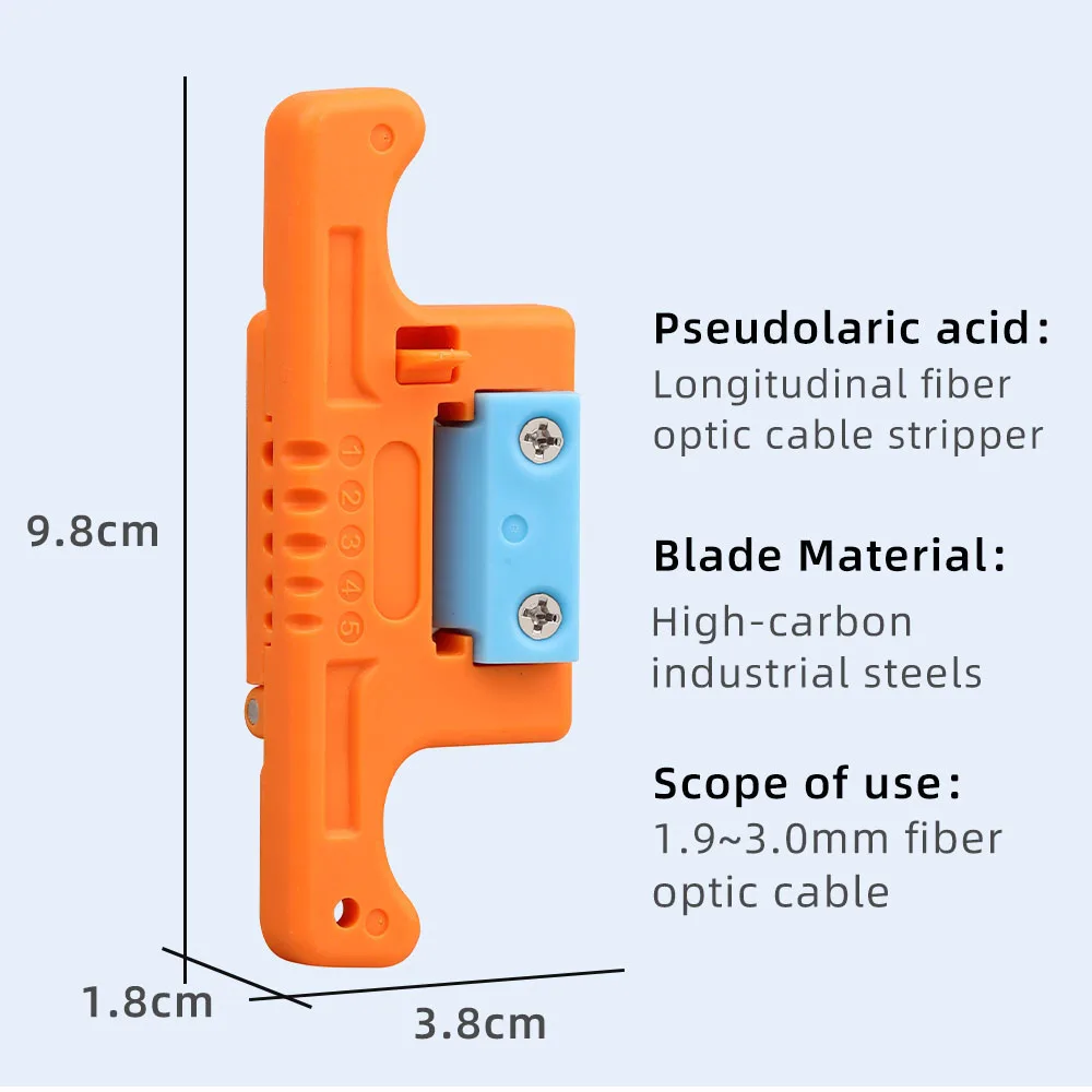 Esta herramienta está diseñada específicamente para pelar cables de fibra óptica con diámetros de 1,9 mm a 3,0 mm, lo que garantiza un pelado preciso y eficiente para un rendimiento óptimo.