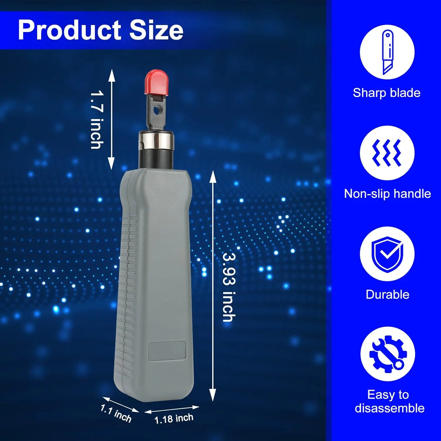 【Hoja de doble función】 La hoja extraíble está hecha de materiales de alta calidad, función de corte/perforación reversible para cortar alambre o empujar hacia el terminal IDC, duradera y precisa, lo que reduce la frecuencia de reemplazo.