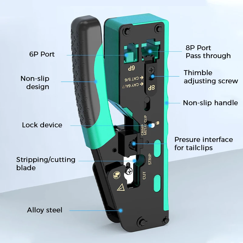 Bulid In Pass Through: La crimpadora de paso proporciona una instalación de conector de crimpado modular rápida y confiable para aplicaciones de voz y datos.