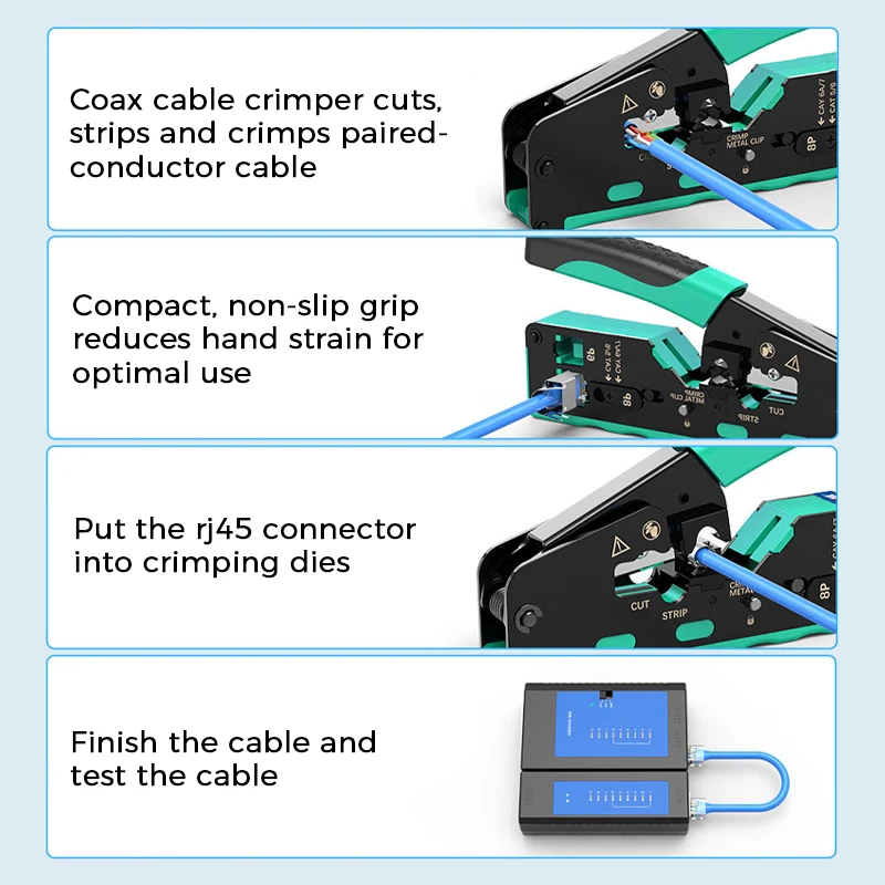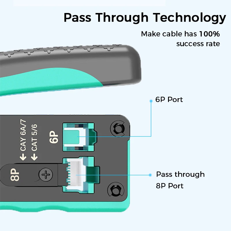 Puede presionar los conectores CAT5e/Cat6/cat7/cat8 RJ45 y el conector telefónico 6p 6C/6p 4c/6p2c