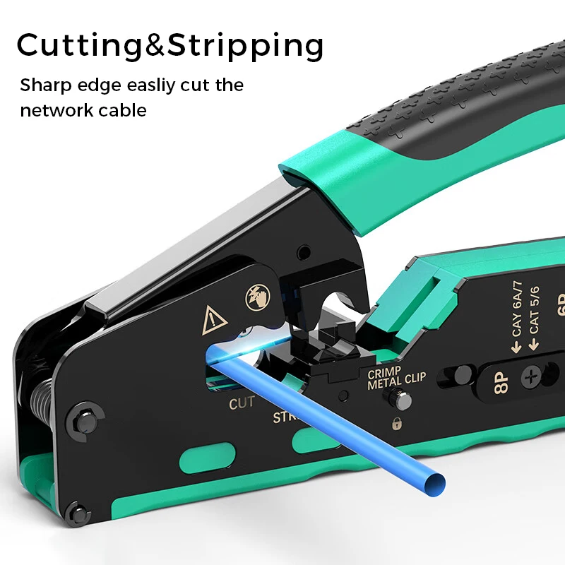ZoeRax RJ45 herramienta de prensado de paso, crimpadora de Cable Ethernet de grado profesional para enchufes modulares Cat7 Cat6A Cat6 Cat5E Cat5
