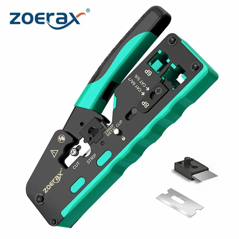 ZoeRax RJ45 herramienta de prensado de paso, crimpadora de Cable Ethernet de grado profesional para enchufes modulares Cat7 Cat6A Cat6 Cat5E Cat5