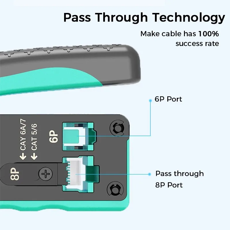 Puede presionar los conectores CAT5e/Cat6/cat7/cat8 RJ45 y el conector telefónico 6p 6C/6p 4c/6p2c