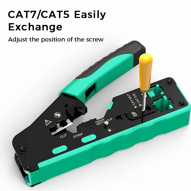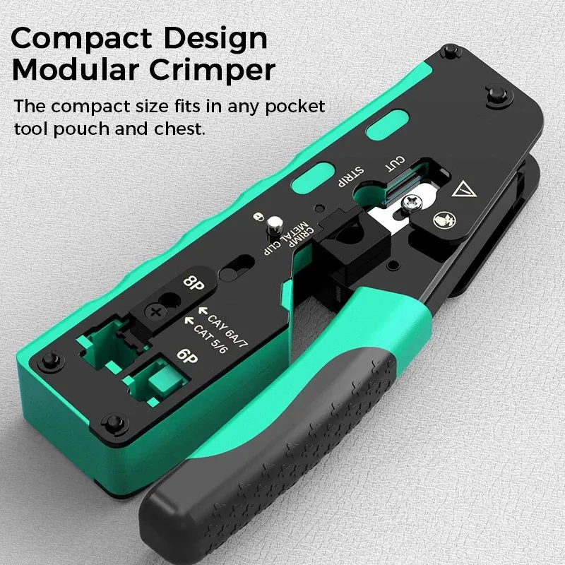 Crimpadora multimodular: esta herramienta de crimpado multifuncional es ideal para crimpado, corte, Ethernet y enchufes modulares RJ45 CAT7/CAT6/CAT5, RJ11 y RJ12 de teléfono.