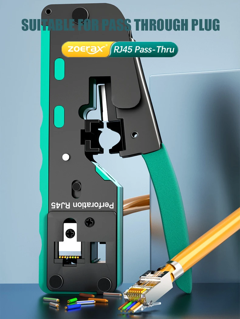 Comprar Zoerax-Herramienta de prensado RJ45, crimpadora de conectores de paso, pelacables, cortador de alambre para CAT5, CAT5e, CAT6, CAT6A, 7