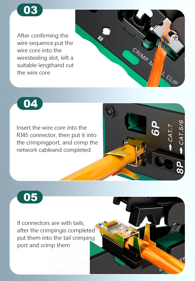 ✅Herramienta de prensado PASS THROUGH, ampliamente aplicaciones: Herramienta de instalación de conector de crimpado modular confiable para aplicaciones de voz y datos: enchufes de conectores 6P 8P RJ45 (estándar RJ11/RJ12 y RJ45 CAT5 CAT5e, CAT6, conectores CAT6A,CAT7,CAT8 o conectores con cola de Milano
