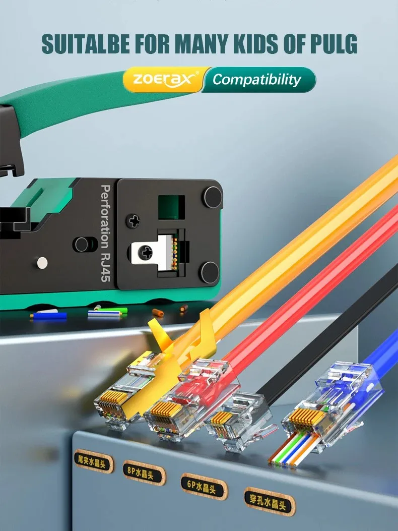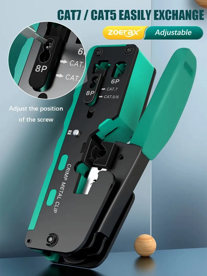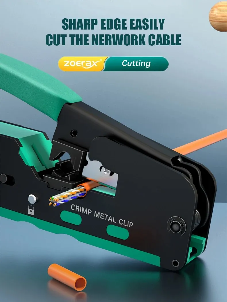 Comprar Zoerax-Herramienta de prensado RJ45, crimpadora de conectores de paso, pelacables, cortador de alambre para CAT5, CAT5e, CAT6, CAT6A, 7