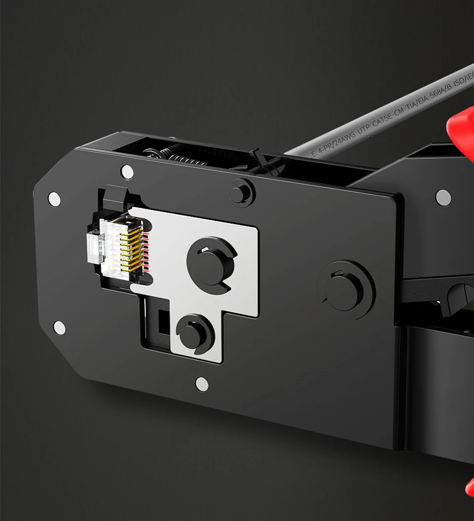 Crea cobre extendido RJ45 limpio y al ras con nuestros troqueles de prensado de tierra de precisión.