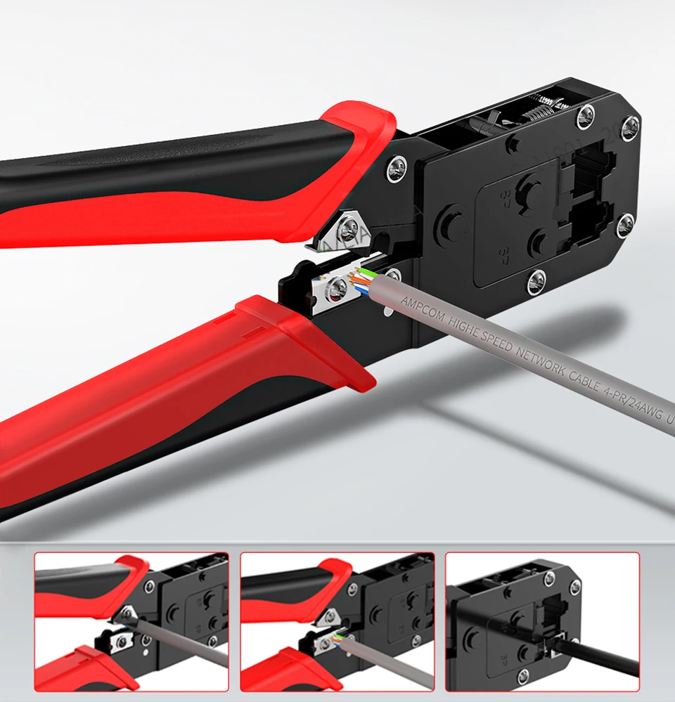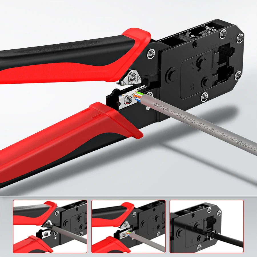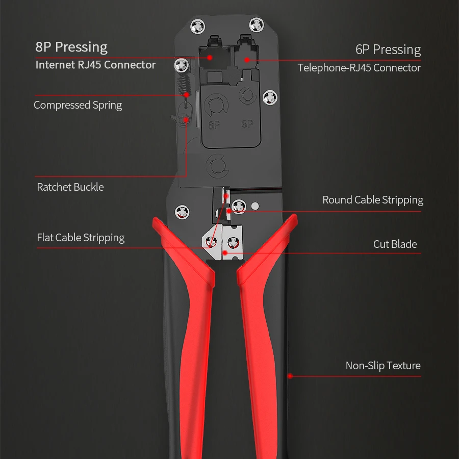 Comprar ZoeRax-Herramienta de prensado RJ45, pelacables de red Ethernet todo en uno, cortador de cables LAN, herramienta engarzadora para 8P/RJ-45 y 6P/RJ-12, RJ-11