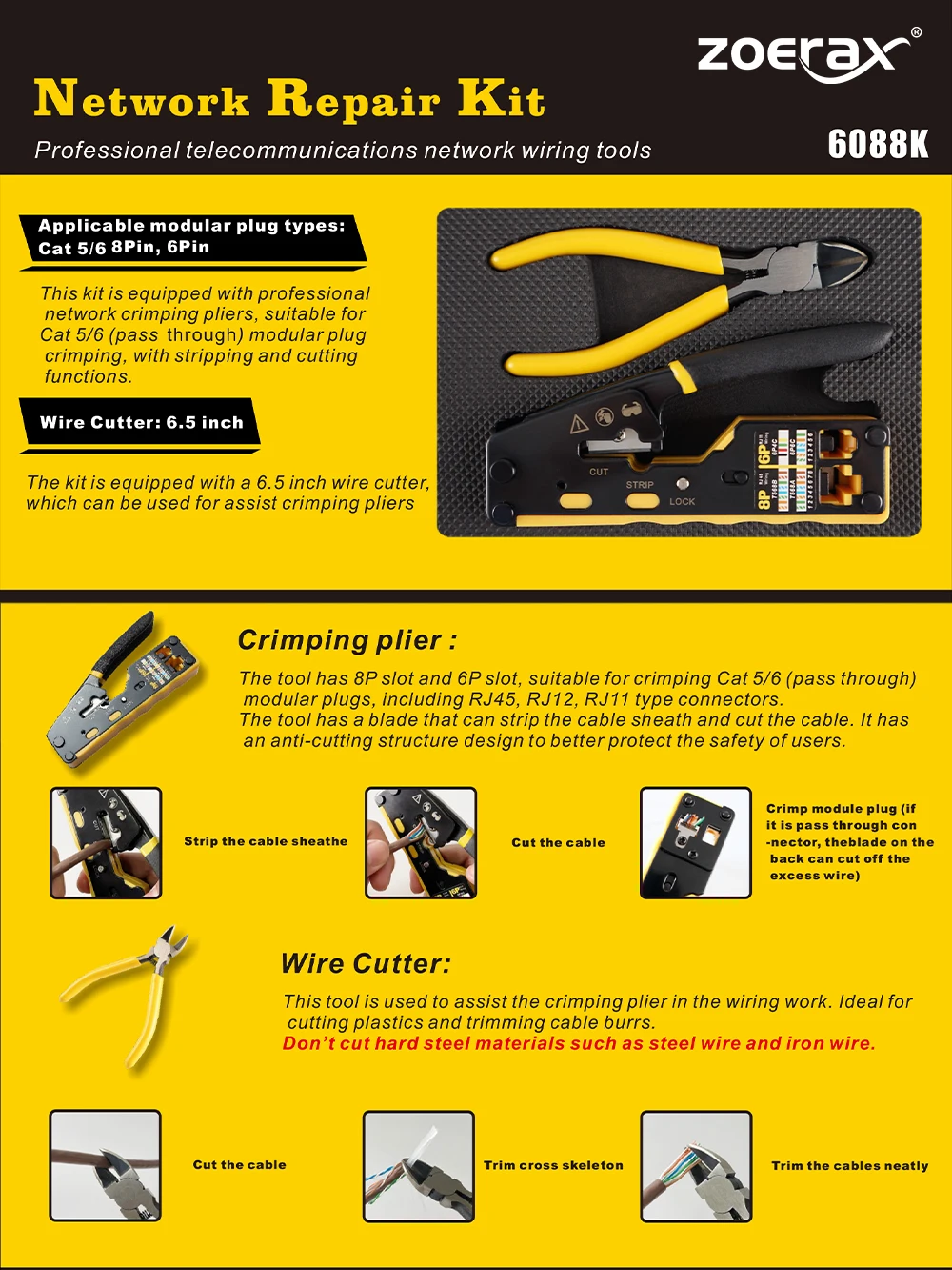 Comprar ZoeRax-Kit de herramientas de crimpado de paso Rj45, Kit de herramientas de engaste Ethernet Cat6 Cat6A Cat5 Cat5e con un crimpador Ethernet 8P/6P