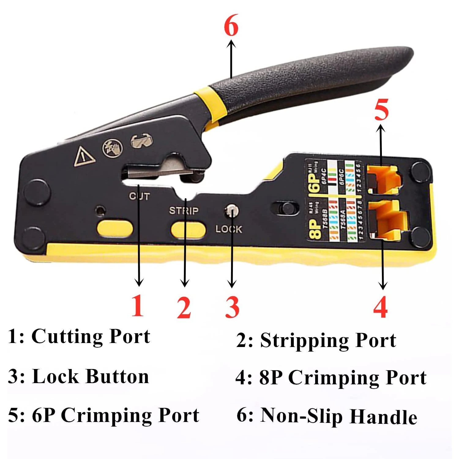 Fácil de usar: esta herramienta de prensado rj45 está diseñada con botón de bloqueo; Podemos prensar conectores mejor y más fáciles sujetando la máquina de prensado rj45 de extrusión más pequeña cuando abrimos el botón de bloqueo; Duradero, con Mango antideslizante, el diseño compacto ahorra tiempo y esfuerzo. Fácil de usar con una sola mano.
