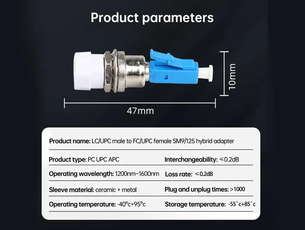 Indica que la pérdida de inserción del adaptador entre diferentes conectores es muy baja, lo que garantiza la estabilidad de la transmisión sianal.