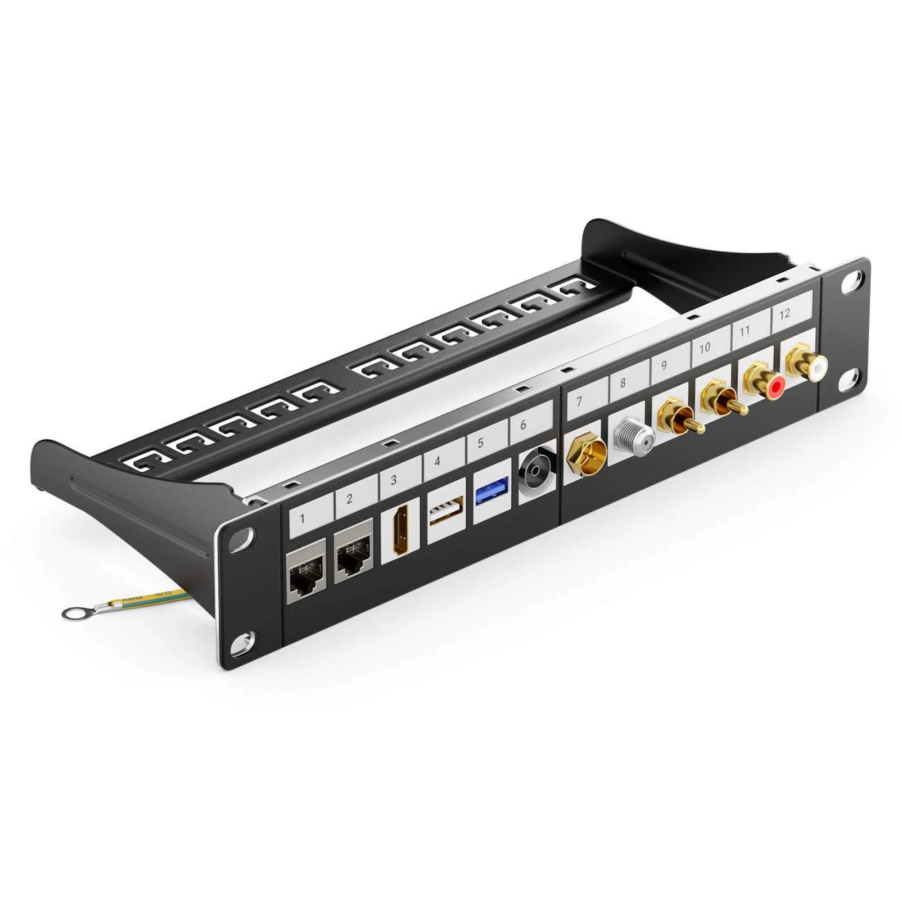 ZoeRax Panel de conexión Keystone en blanco de 12 puertos Panel de conexión Keystone 1U Panel de conexión de red blindado de 10”, montaje en rack o montaje en pared con gestión inteligente de cables