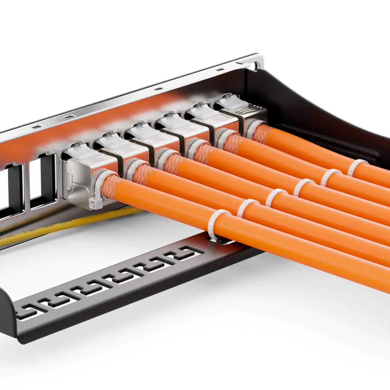 【Gestión inteligente de cables】El panel de conexión en blanco tiene una barra de administración de cables, no es necesario, espacios de etiquetas grabables y una barra de administración de cables trasera para soportar el peso de 12 cables.