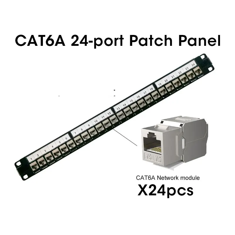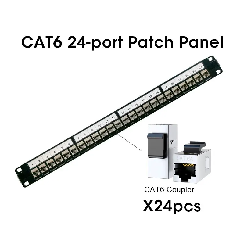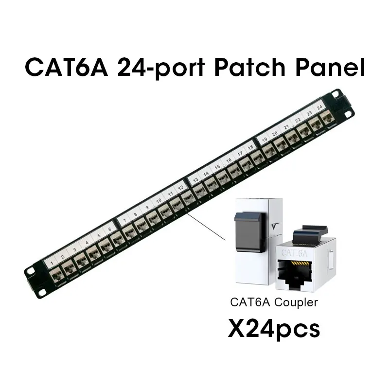 SKU4: panel de conexión en blanco de 24 puertos + acoplador CAT6A de 24 piezas