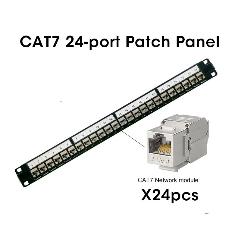 SKU3: panel de conexión en blanco de 24 puertos + conector KEYSTONE CAT7 de 24 piezas