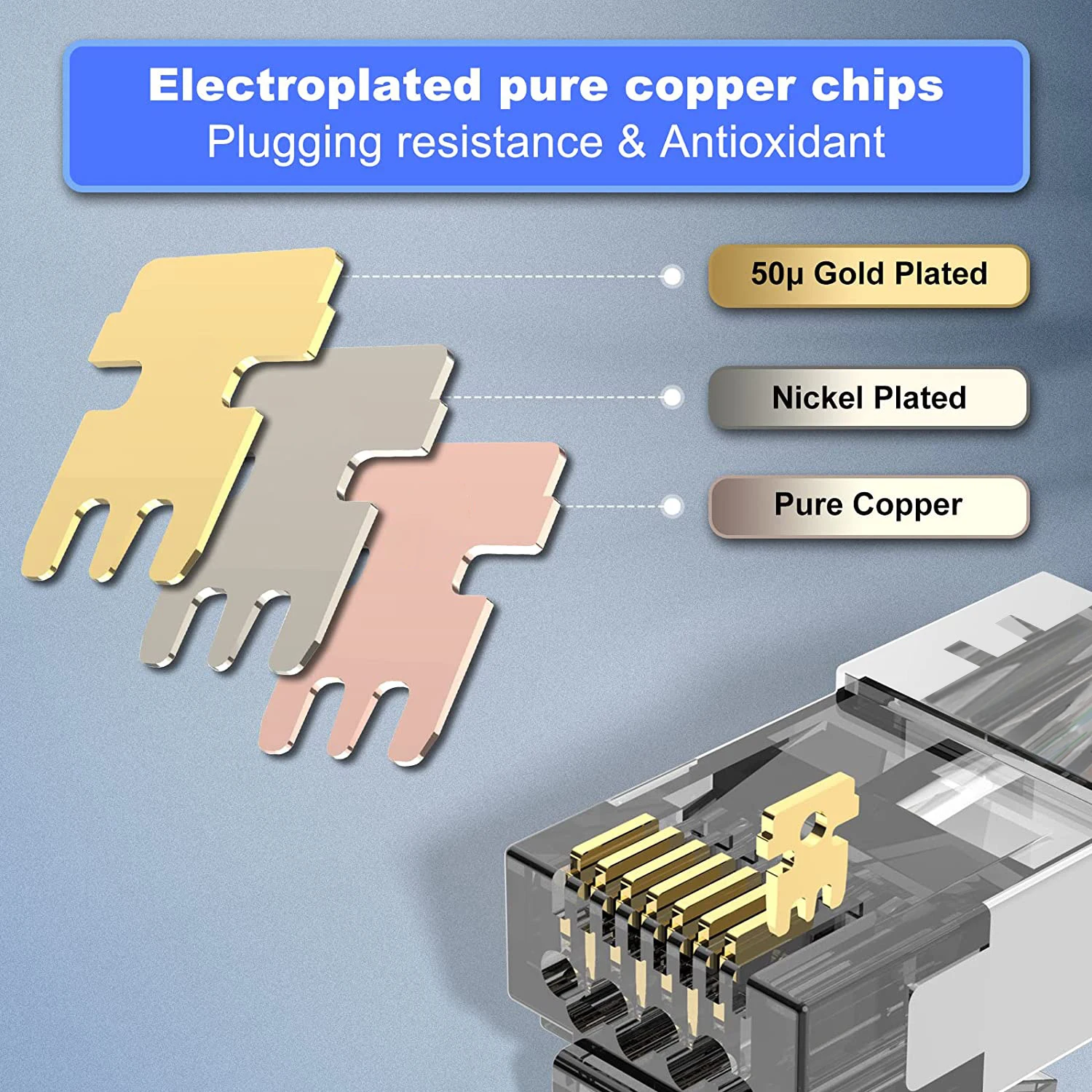 Cobre puro galvanizado con revestimiento de oro/níquel de 50 μ para una conductividad, antioxidación y durabilidad superiores.