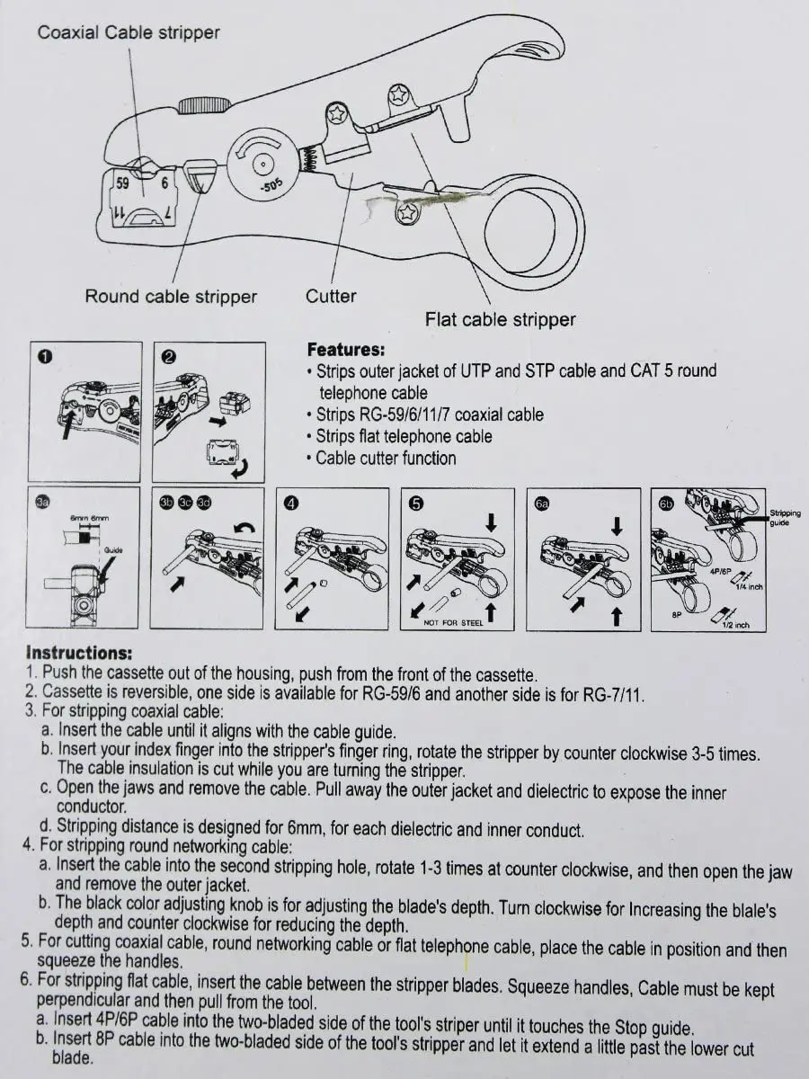 ★Hecho para Coaxial (RG59, RG6, RG7, RG11), red (Cat5e, Cat6, UTP, STP), Cable redondo y plano