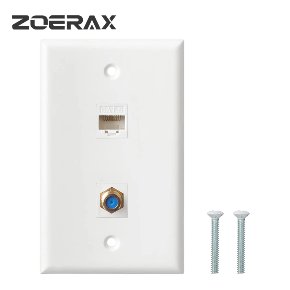 ZoeRax Ethernet Coax Wall Plat, 2 puertos/3 puertos Cat6 Keystone Jack Coupler y Gold Plated RG6 Keystone Jack Insert Wall Plat