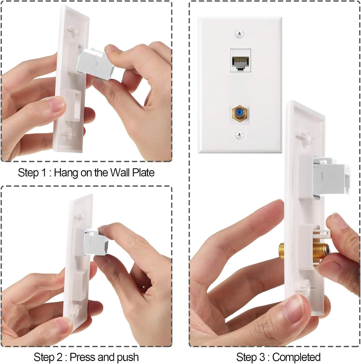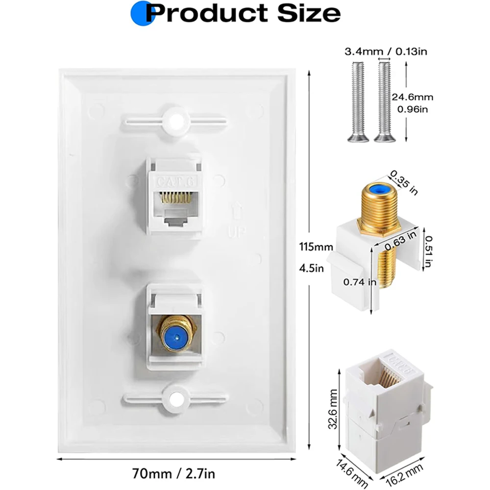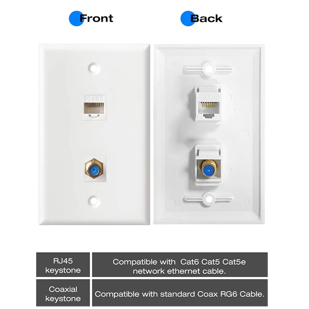Placa de pared tipo F Cat6: ideal para conectar cajas de TV, enrutador, satélite u otros dispositivos habilitados para Canal coaxial/Ethernet a sus otros dispositivos.
