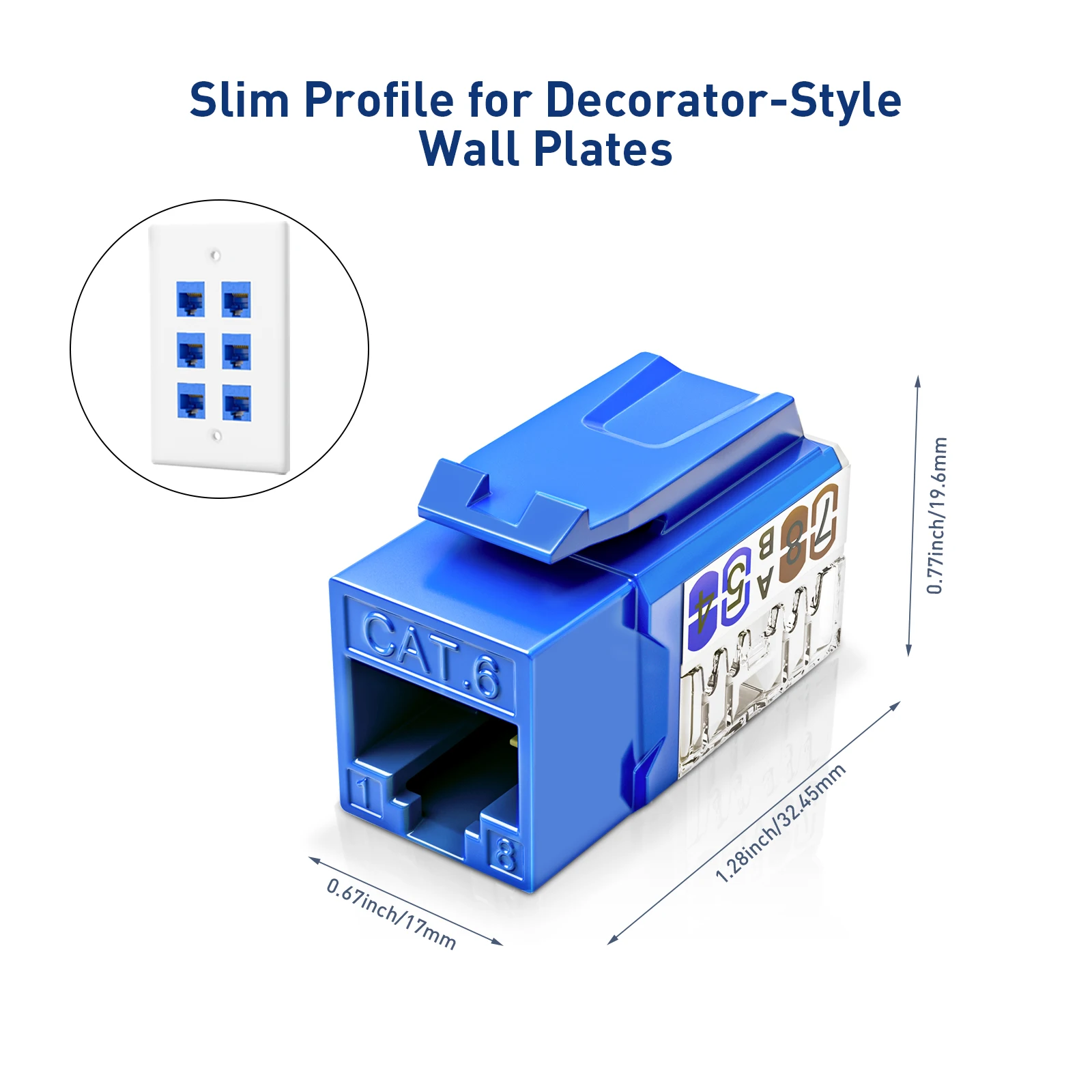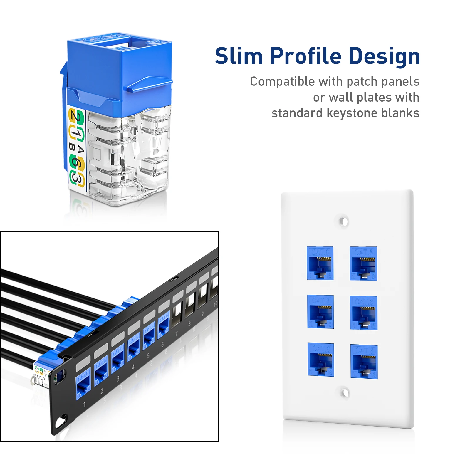 ZoeRax RJ45 Cat6 Keystone Jacks perfil delgado 1/10/30-pack, adaptador de conector Keystone punzonable Ethernet de 90 grados