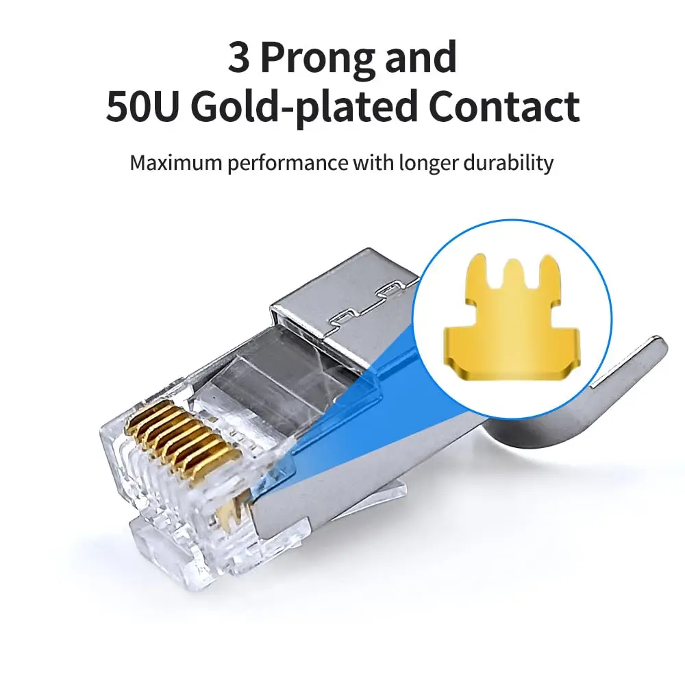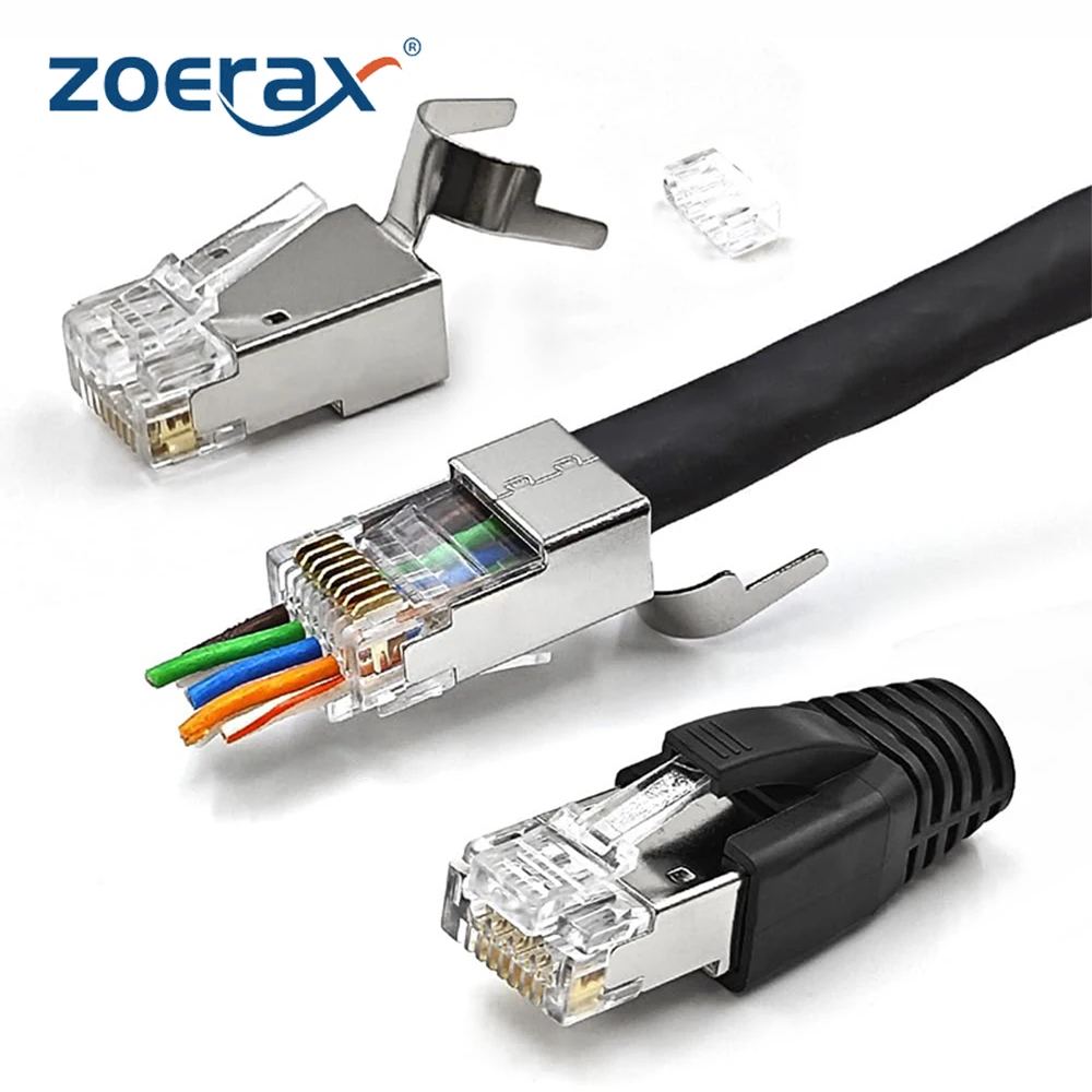 ZoeRax RJ45 CAT8 Cat7 Cat6A Pasar a través de conector blindado Red Modular enchufe chapado en oro de 3 clavijas de 50 μ con bota para aliviar la tensión