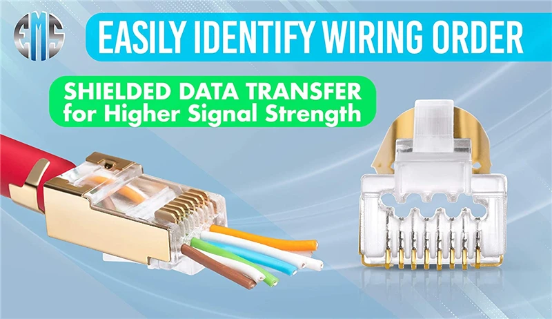 TRANSMISIÓN DE DATOS MÁS RÁPIDA: en comparación con los enchufes RJ45 tradicionales sin blindaje, nuestros conectores pasantes Cat7 son capaces de ofrecer mejores velocidades de transmisión de datos y mayor intensidad de la señal.