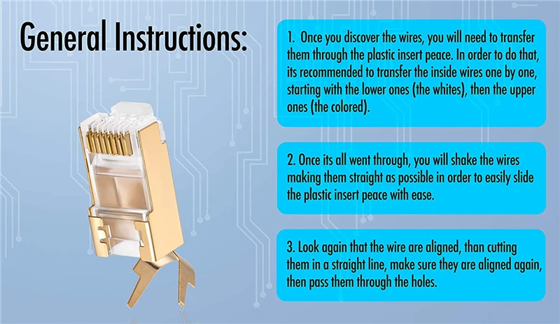 AHORRA TIEMPO Y ESFUERZO: estos enchufes RJ45 cuentan con un diseño de paso, que permite que los cables pasen a través del conector para que pueda verificar si están en el orden correcto antes de engarzarlos.