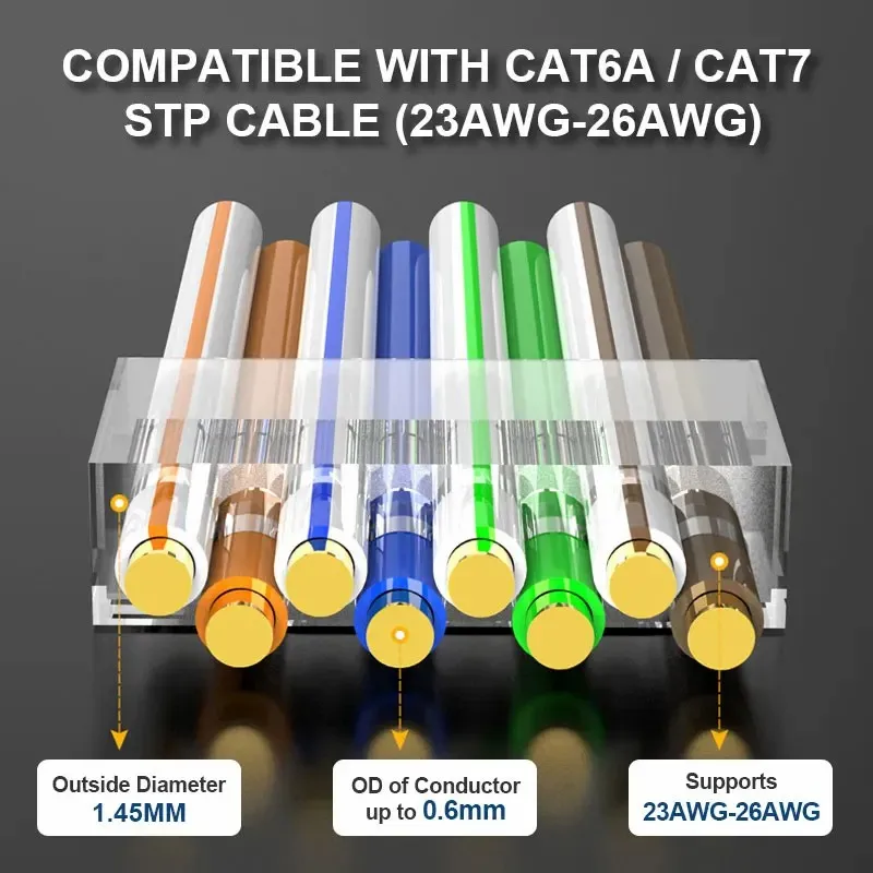 Conectores de paso RJ45 Cat7 y Cat6A| 8P8C 50UM FTP/STP blindado chapado en oro| Conector modular de red RJ45 para cable Ethernet 23 AWG