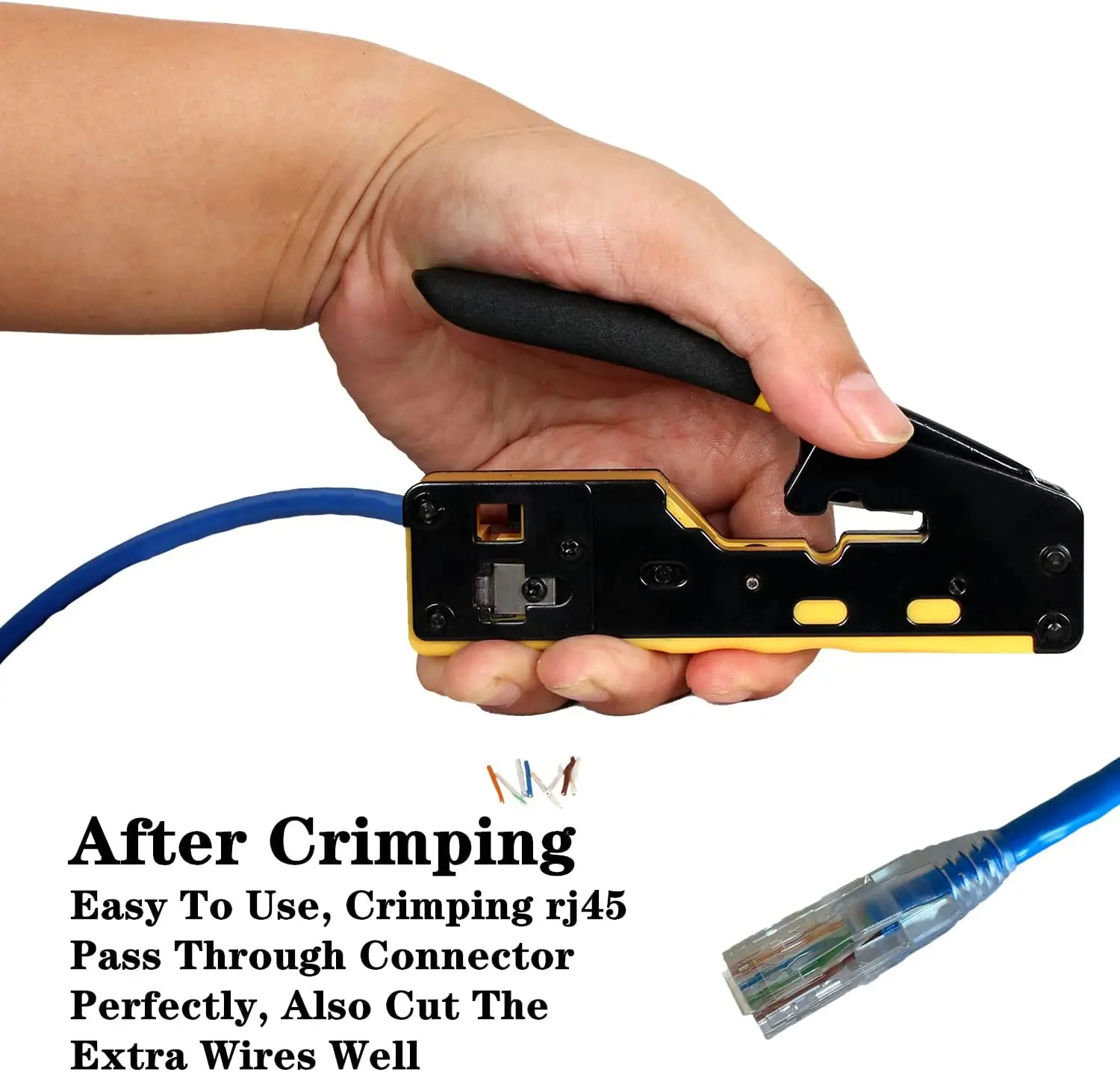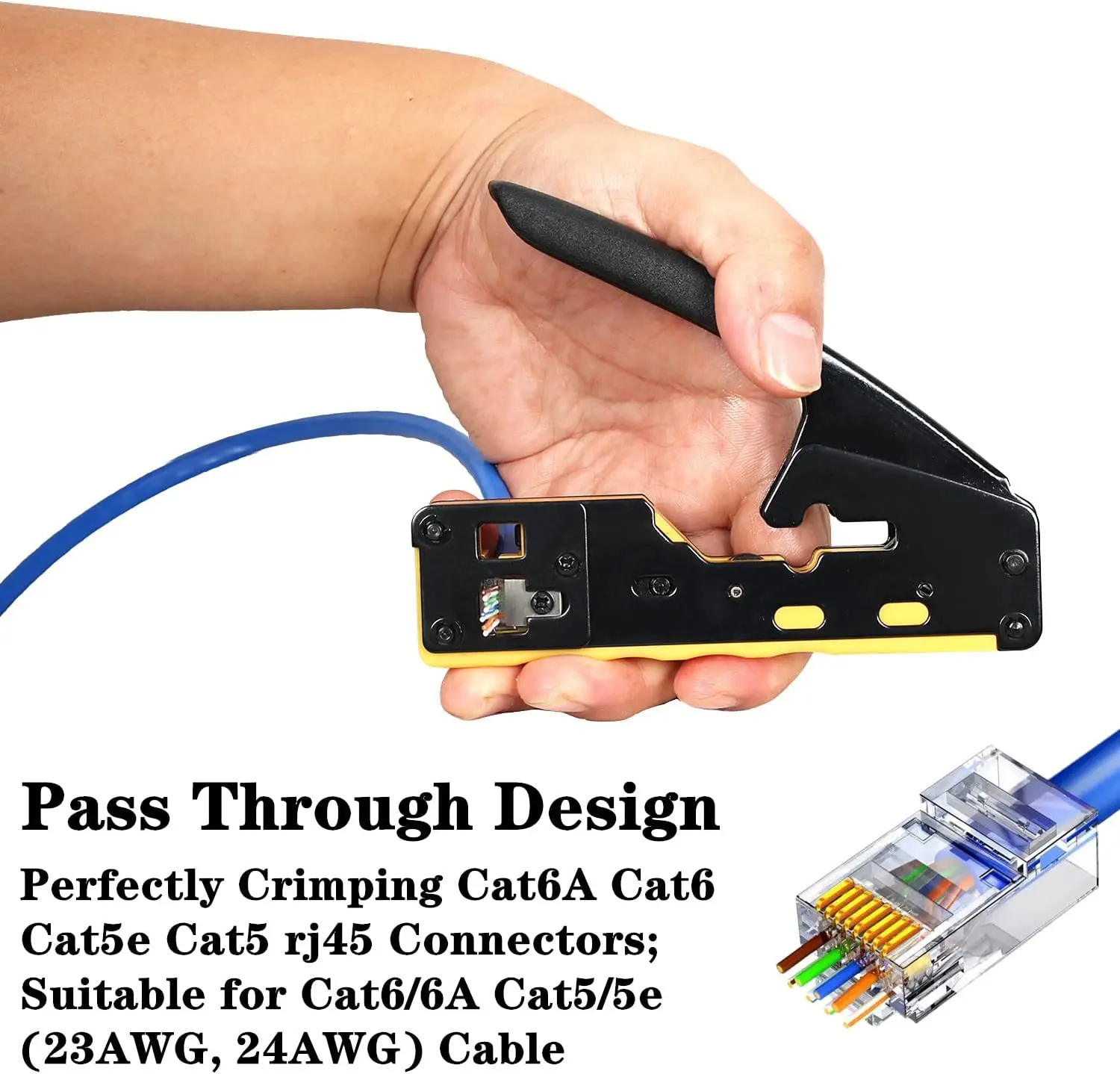 ✅Herramienta de engarce RJ45 para conectores Pass-Thru RJ45 cat5e cat6a, funciona con cable de 26awg ~ 23awg.