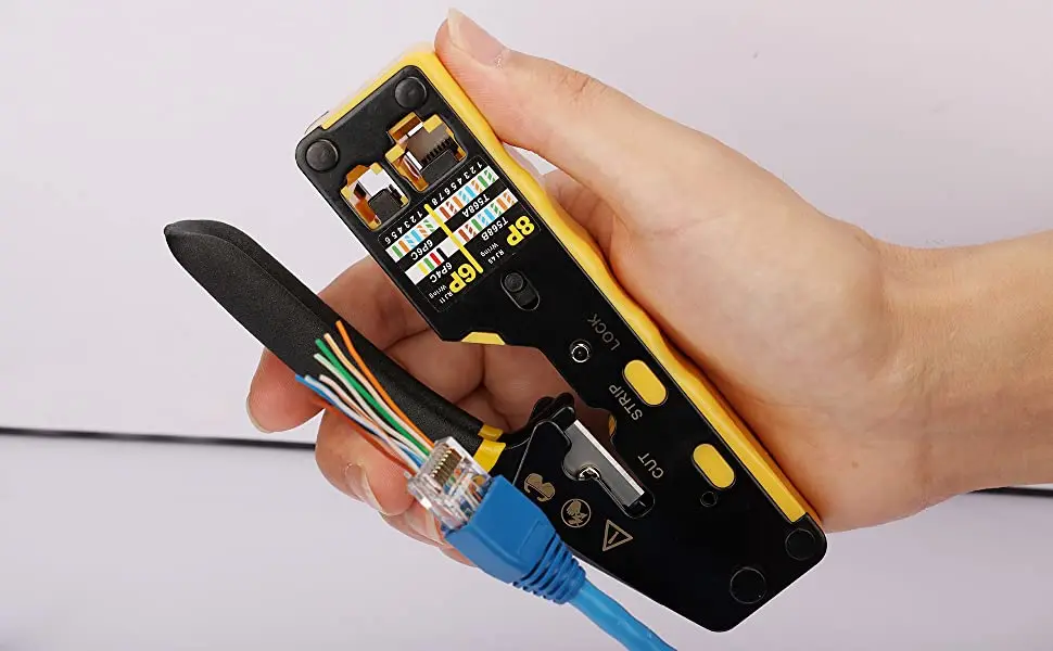Herramienta de engarce ZoeRax RJ45, cortadora de engarzado para Cat6a Cat6 Cat5 Cat5e 8P8C, conector modular, herramienta de cable todo en uno Ethernet