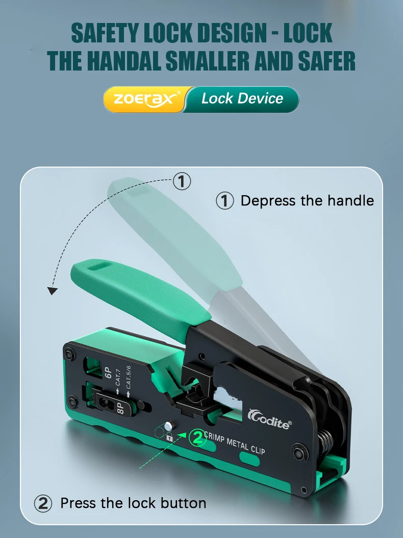 🎁 ¿Qué hay en el paquete? – El paquete incluye 1 máquina engarzadora de paso todo en uno, 2 cuchillas. Después de su uso, puede almacenarlo cómodamente gracias a su función de bloqueo, todo junto, lo que convierte a esta herramienta de red todo en adelante en la mejor opción hoy.