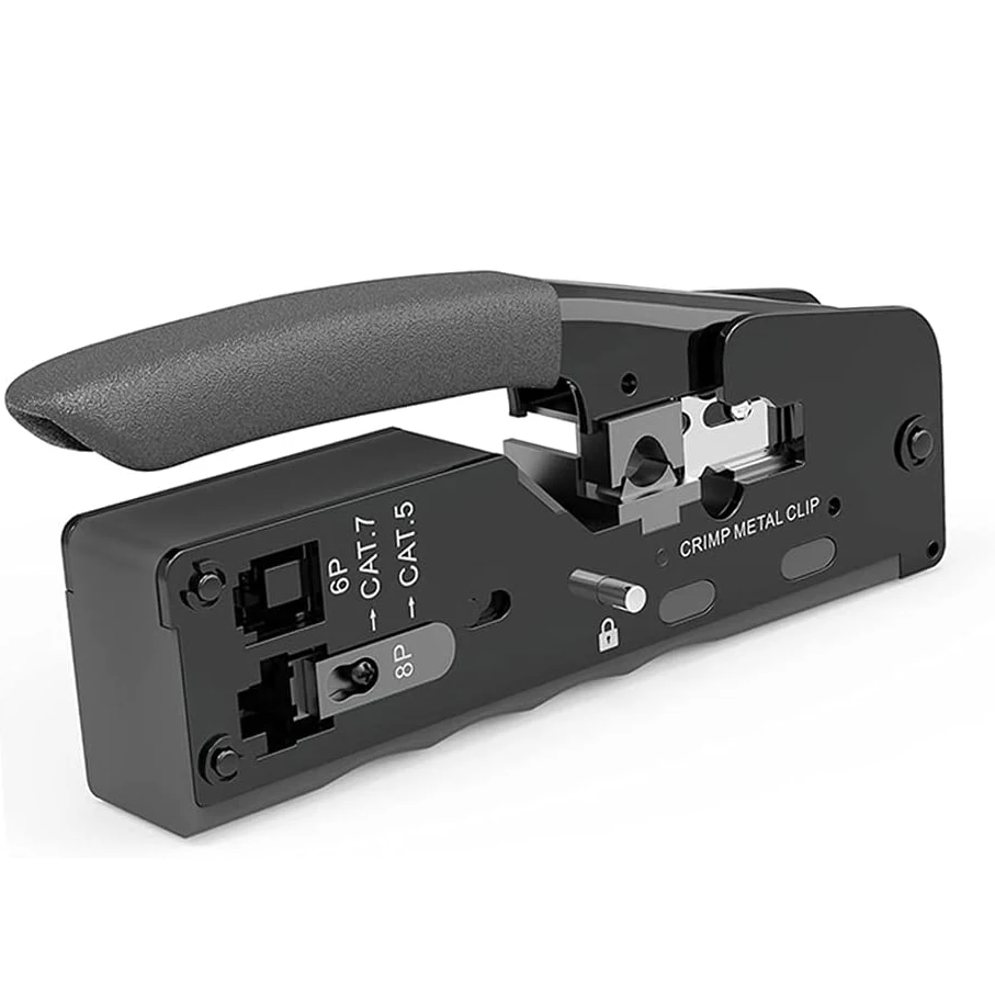 ZoeRax [Crimeadora de paso todo en uno] Conectores de red blindados y estándar CAT5/5e CAT6 CAT6a CAT7 y cables Ethernet RJ45 RJ12 RJ11 engarzado y abrazadera de corte de tiras