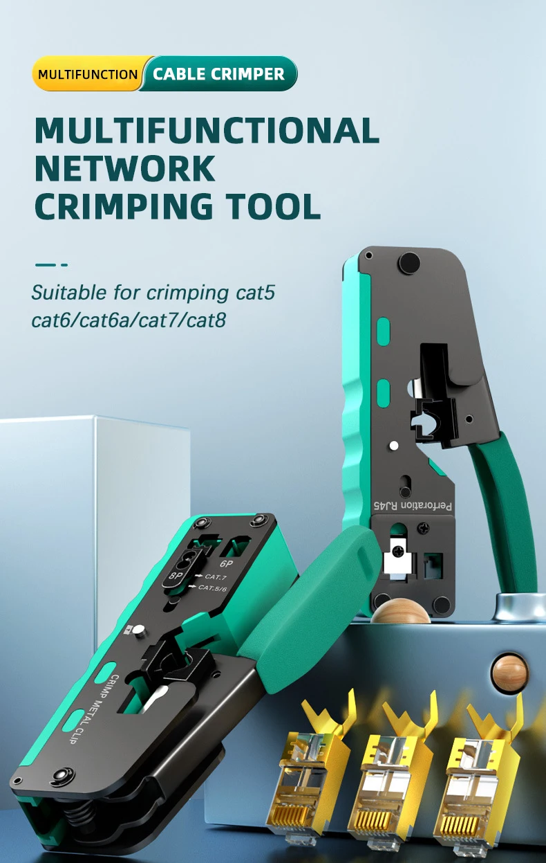 ✅Construido para enchufes de red blindados: engarza las cavidades de matriz fija estándar RJ45 (datos) y RJ12 RJ11 (voz), admite cables Ethernet Cat5 Cat5 Cat5e Cat5e STP/UTP, pares trenzados, engarzado de cables de teléfono, voz y datos.Especialmente diseñado para conectores blindados Cat6a Cat7 y engarce el clip metálico en el enchufe.