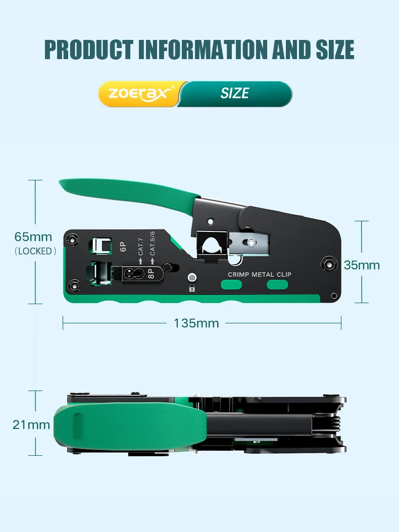 Comprar ZoeRax RJ45 Pasar a crimpadora CAT5/5e CAT6 CAT6a CAT7 Conectores de red estándar y blindados y RJ45 RJ12 RJ11